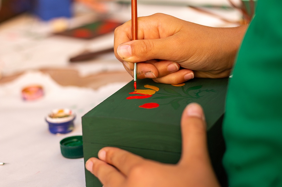 – hangzottak el az aranyos, megmosolyogtató szavak egy kislány szájából. A bútorfestés folyamatát is ismertették velünk: legelső lépés a csiszolás, ezt követi az alapozás, ha ez megszáradt, jöhet a minta, majd a legjobb rész, a festés – először a szárak és a levelek zölddel, legvégül pedig a virágok. Sőt, egy fortélyt is elárultak nekünk, és figyelmeztettek, ha netalántán bútorfestésre adnánk a fejünket, a virágokat először mindeképpen sárgára fessük, s csak azután vigyük fel a piros színt, így ugyanis szebb végeredmény kapunk majd.
