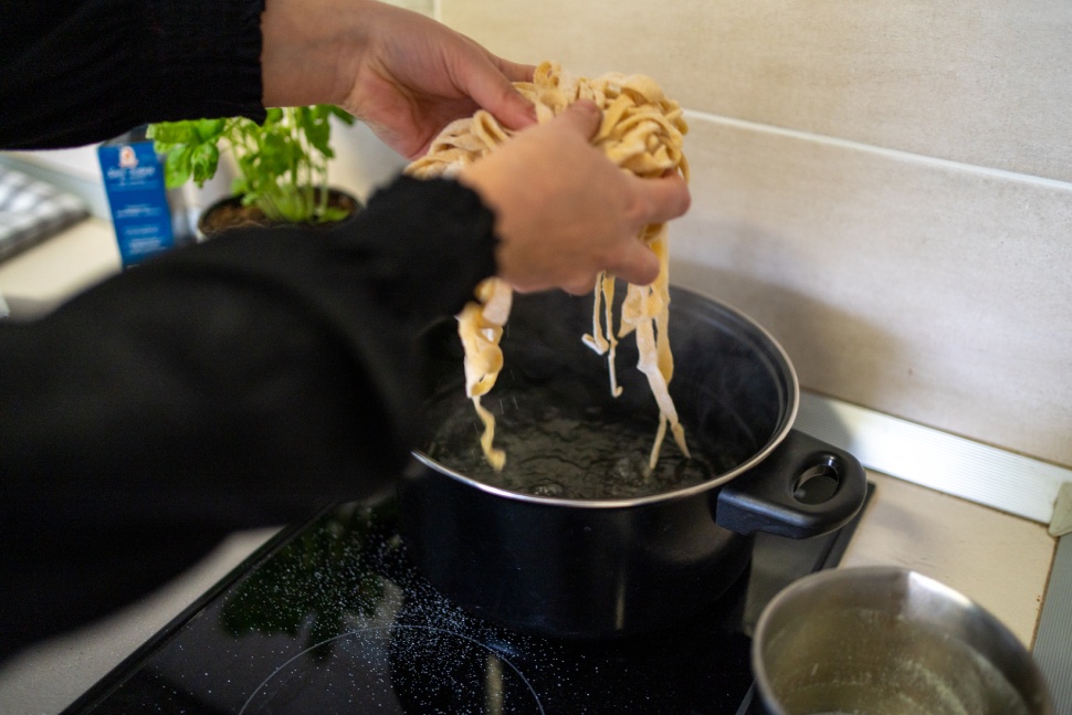 Hazajöttünk, legoogliztuk, és az életünk onnantól megváltozott. (szarkasztikus kacagás) Kiderült, hogy bolti száraz laskát főzni ugyanannyi idő, mint frisset csinálni. Nincs lemérve, de merek fogadni. Kiderült, hogy 100 g liszt és egy tojás az egy ember adagja – BUMM!