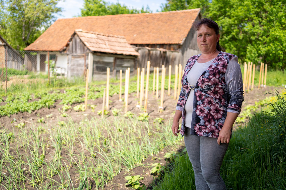 Három veteményes van a bal oldalon, egy csak a fuszulykának, mert a fuszulykaleves a gyerekek kedvence, a másik „kicsi” veteményesben –, aminek a végét nem látom be – mindenféle finomság: hagyma, paradicsom, saláta, borsó, uborka, eper, fokhagyma, retek, karfiol, karalábé, vineta, murok, spenót – sorolja Zsuzsanna.
