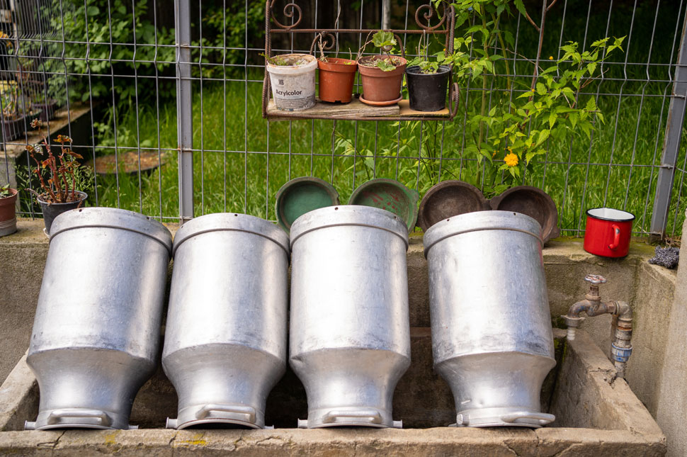 Dénes az utca alján, a felesége, Zsuzsanna a kapuban vár minket, hogy biztos jó helyre érkezzünk. Egy hosszú udvaron sétálunk végig, Zsuzsanna elmondja, hogy az anyósával naponta kétszer takarítják le, mert itt mennek és jönnek a tehenek.