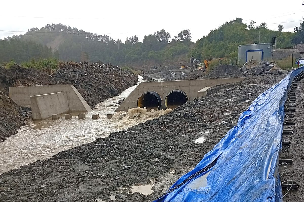 A beépített bordázott csőrendszer kapacitása a hivatalos mérések szerint 10–14 köbméter másodpercenként, miközben a legutolsó kiadott közlemény szerint szerdán 5,9 köbméter/másodperc volt reggel, majd 3,6-ra csökkent délre. A számok arra utalnak, hogy a rendszer elvileg elegendő lehetett volna, a gyakorlat azonban mást mutatott: a patakmederből így is kiszivárgott víz, elárasztva a munkaterület egy részét. A gátak megerősítését, az elvezető árkok kiásását és a zúzott kő beépítését jelenleg is végzik.