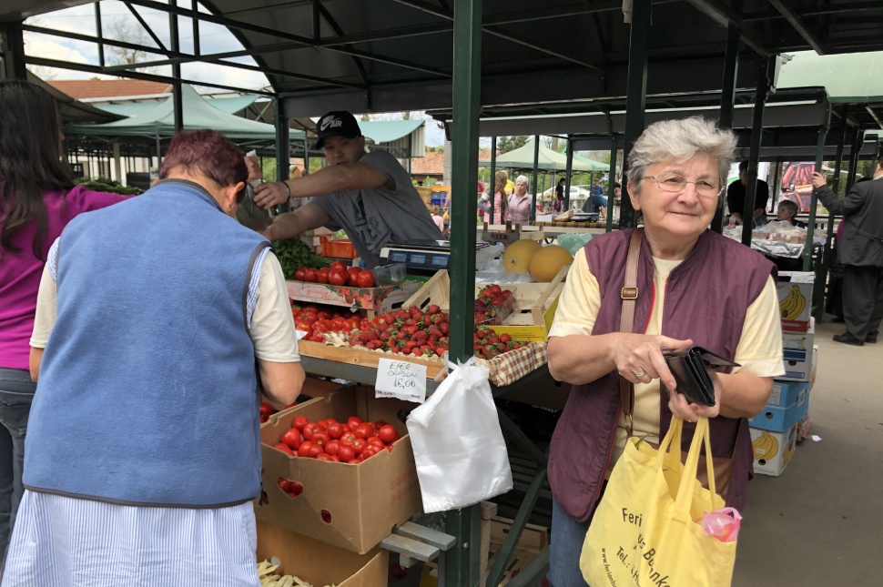 Azért jobban szereti kényelem szempontjából a piacot, mert „itt tudom, hogy árulok, otthon pedig kapálok. Nem kell előrejöjjek mindegyre a kapálásból”. Igaz, hogy kevesebb most a vásárló, mint más években, de most a konkurencia is kevesebb, hogy nincs akkora választék, nem járnak rosszabbul a helyi termelők, legalábbis ő.