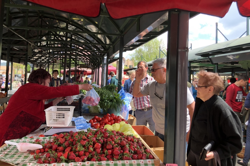 Az eper még nem terem nálunk, tehát viszonteladók már vannak a piacon. Néhány hete még csak egy pár termelő kukucskált a papsaláta, házi tojás és a csihánykupacok között. Akkor még nem engedték a viszonteladóknak, hogy kijöjjenek. Vasárnapokon pedig egy galamb felügyelte a teret.